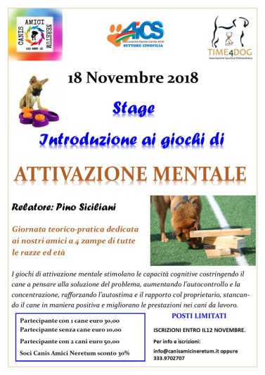 situazioni difficili viene migliorata e rafforzato il legame con il padrone poiché questo diventa propositore di nuove attività che danno soddisfazione al cane, gli permettono di sfogare la sua